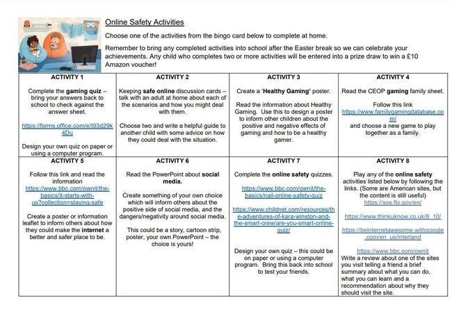 Online Safety Activities with links